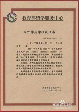 3.在境外獲得學歷證書的考生除上述對應(yīng)類別應(yīng)該提交的材料外還須上傳教育部留學服務(wù)中心出具的《國外學歷學位認證書》原件。示范照片如下: