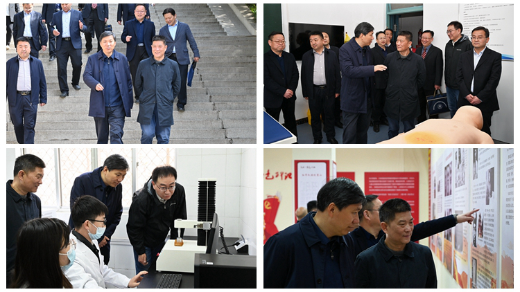 會前,李波一行在范新會等人陪同下參觀了我校心理健康教育中心、健康學院教學研究實驗室、紅色文化資料館。