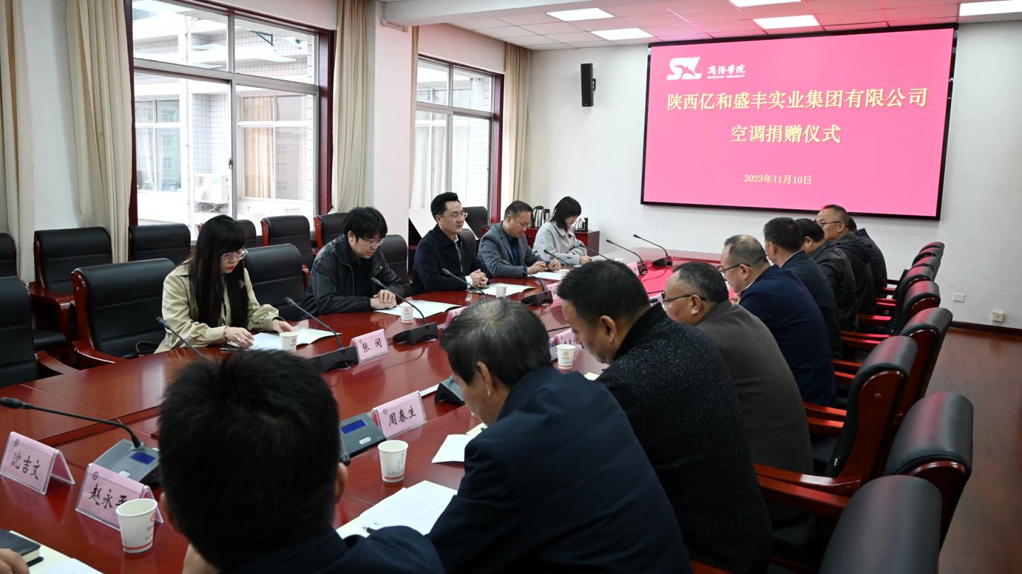 為進(jìn)一步改善學(xué)校辦學(xué)條件,經(jīng)友好協(xié)商,陜西億和盛豐實(shí)業(yè)集團(tuán)有限公司向我校丹江校區(qū)學(xué)生公寓樓C棟捐贈(zèng)價(jià)值60余萬元的176臺空調(diào)設(shè)備。11月10日,我校舉辦空調(diào)設(shè)備捐贈(zèng)儀式。陜西億和盛豐實(shí)業(yè)集團(tuán)有限公司董事局主席黃鵬、董事長黃濤出席捐贈(zèng)儀式。校長范新會(huì)代表學(xué)校接受捐贈(zèng)并向陜西億和盛豐實(shí)業(yè)集團(tuán)有限公司頒發(fā)捐贈(zèng)證書。副校長郭瑾主持捐贈(zèng)儀式并向企業(yè)頒發(fā)捐贈(zèng)牌匾。