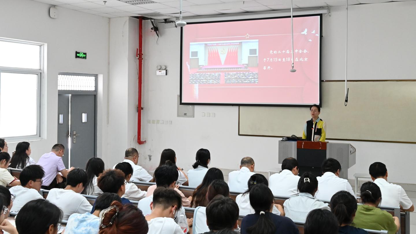 校領(lǐng)導(dǎo)圍繞“全會有關(guān)情況和重大意義、全會對教育事業(yè)作出的部署、學(xué)習(xí)全會精神應(yīng)把握的重點、青年大學(xué)生如何學(xué)習(xí)貫徹全會精神”四個方面,帶領(lǐng)廣大青年學(xué)子深入學(xué)習(xí)了解黨的二十屆三中全會精神,號召全體師生緊密團結(jié)在以習(xí)近平同志為核心的黨中央周圍,在推進中國式現(xiàn)代化的新征程上貢獻個人力量。