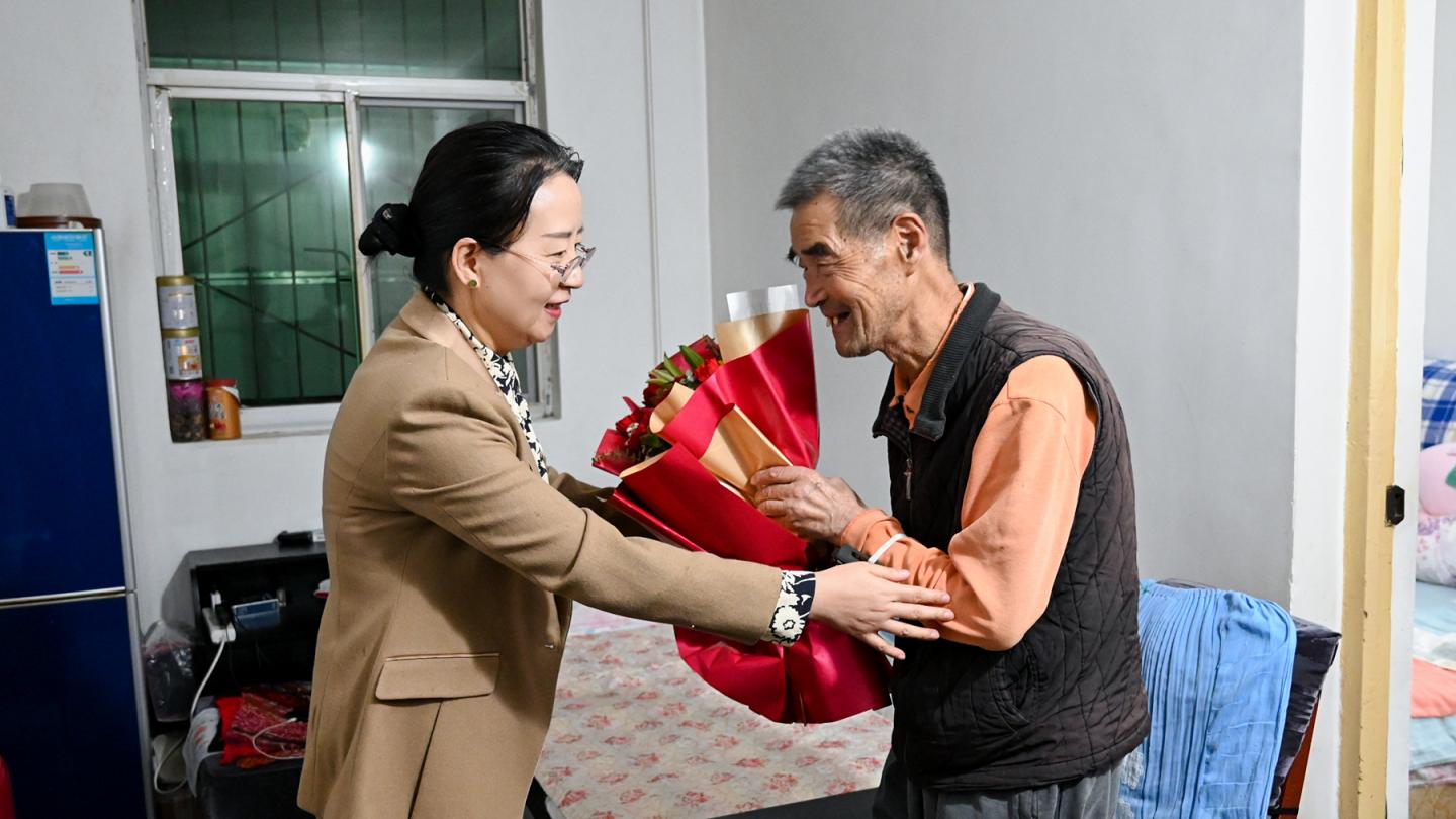 在老革命后代、老黨員代表王忠孝老師家中,權(quán)雅寧同85歲高齡的王老師親切交談,詳細了解王老師身體狀況、飲食起居,以及生活出行等方面的需求和困難。權(quán)雅寧叮囑學校相關(guān)部門要做好老教師、老同志的服務保障工作,不斷提升大家的獲得感、幸福感,也希望各位老教師、老同志為學校的發(fā)展積極建言獻策。