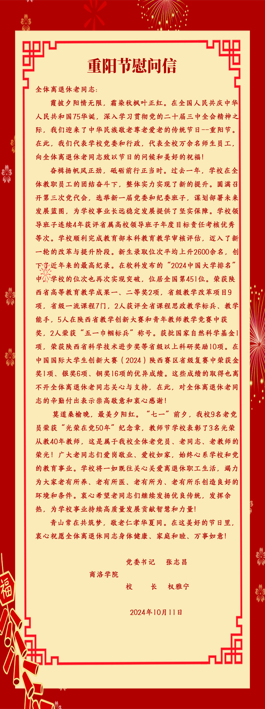 上一篇:商洛學(xué)院開展2024年慶祝重陽節(jié)系列活動