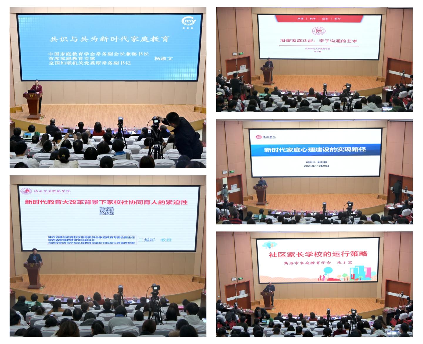 開(kāi)幕式結(jié)束后,楊淑文、王越群、李少梅、我校健康管理學(xué)院副院長(zhǎng)楊憲華、朱才寶分別以《新時(shí)代家庭教育的共識(shí)與共為》《國(guó)家教育大改革背景下家校社協(xié)同育人的緊迫性》《凝聚家庭功能:親子溝通的藝術(shù)》《新時(shí)代家庭心理建設(shè)的實(shí)現(xiàn)路徑》《社區(qū)家長(zhǎng)學(xué)校的運(yùn)行策略》為題作了專題報(bào)告。
