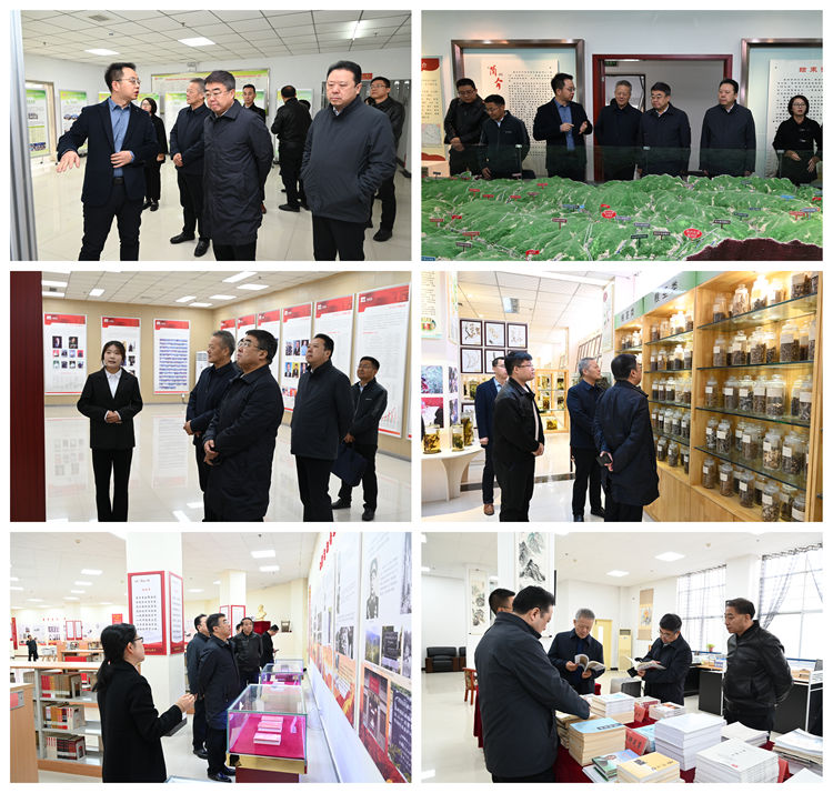 在張志昌、王新軍等的陪同下,趙曉林一行先后參觀考察了陜西省尾礦資源綜合利用重點實驗室、商洛學院發(fā)展成就展、秦嶺植物標本陳列室、植物學重點學科展室、商洛紅色文化資料館及商洛文化暨賈平凹研究中心。