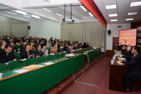 大會(huì)號(hào)召廣大教職工積極行動(dòng)起來,在校黨委的領(lǐng)導(dǎo)下,高舉中國特色社會(huì)主義偉大旗幟,全面貫徹落實(shí)黨的十八大精神和習(xí)近平總書記系列重要講話精神,進(jìn)一步解放思想,與時(shí)俱進(jìn),開拓創(chuàng)新,深化改革,扎實(shí)工作,為把我校建成一流應(yīng)用型本科院校而努力奮斗!