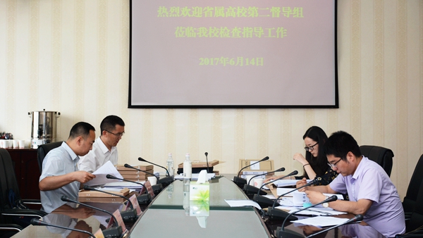 6月14日,以西北大學(xué)原黨委副書記黃建民為組長的陜西省委高教工委第二督導(dǎo)組來我校,檢查督導(dǎo)追趕超越、貫徹“三項(xiàng)機(jī)制”和推進(jìn)“兩學(xué)一做”學(xué)習(xí)教育常態(tài)化制度化、精準(zhǔn)扶貧、思政教育和黨風(fēng)廉政建設(shè)等方面工作。校黨委書記龍治剛、校長范新會(huì)、副校長劉勇陪同檢查。黨委委員、干部人事處處長高榮發(fā)參加督查。