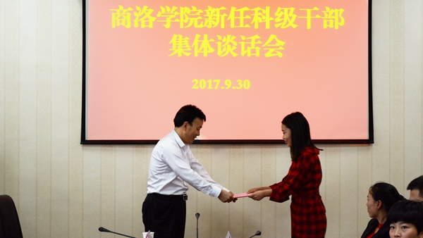 會上,黨委組織部部長郭瑾宣讀了《中共商洛學(xué)院委員會關(guān)于李川川等17位同志任職的通知》和《商洛學(xué)院關(guān)于李晶晶等29位同志任職的通知》。新任科級干部代表趙萍作了表態(tài)發(fā)言。