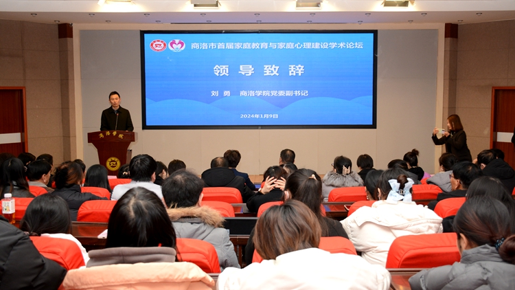 為探尋家庭教育、校家社協(xié)同育人及心理教育的理論、方法與途徑,形成育人合力,為商洛市家庭教育、心理教育事業(yè)快速健康發(fā)展貢獻(xiàn)智慧和力量,1月9日下午,由我校與商洛市家庭教育學(xué)會(huì)聯(lián)合舉辦的商洛市首屆家庭教育與家庭心理建設(shè)學(xué)術(shù)論壇在我校舉行。校黨委副書記劉勇出席論壇開幕式并致辭。市關(guān)工委副主任兼秘書長(zhǎng)范良增,市婦聯(lián)主席胡燕梅,商洛市家庭教育學(xué)會(huì)會(huì)長(zhǎng)朱才寶,市科協(xié)、市教育局、商洛市政協(xié)五屆教育婦聯(lián)界委員工作室相關(guān)人員,商洛漁歌子書店文化發(fā)展有限公司負(fù)責(zé)人魚小先,我校社會(huì)科學(xué)處負(fù)責(zé)人,健康管理學(xué)院黨政負(fù)責(zé)人、應(yīng)用心理學(xué)專業(yè)師生代表共140余人參加論壇。