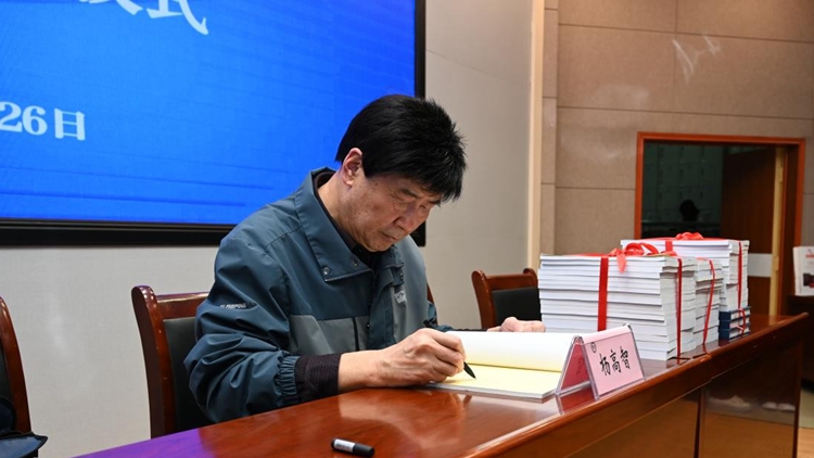 捐贈儀式上,王新軍為楊高智頒發(fā)收藏證明,圖書館館長張國春代表學(xué)校接受贈書。