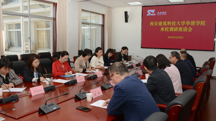 劉寶盈代表學(xué)校對西安建筑科技大學(xué)華清學(xué)院一行來訪表示熱烈歡迎,并從學(xué)科建設(shè)、專業(yè)設(shè)置、人才培養(yǎng)等方面介紹了我校的基本情況。王袁媛簡要介紹了西安建筑科技大學(xué)華清學(xué)院基本情況,并希望通過此次交流汲取經(jīng)驗(yàn),拓寬發(fā)展思路。