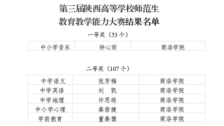 近日,陜西省教育廳公布了第三屆陜西高等學(xué)校師范生教育教學(xué)能力大賽獲獎名單,我校喜獲一等獎1項,二等獎5項。