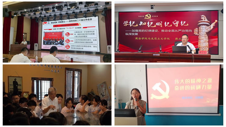 8月13日至16日,馬克思主義學(xué)院教師劉麥霞、蔣正治、楊增強(qiáng)、武曉婕、路遠(yuǎn)前往西安海關(guān),分別以《黨的二十屆三中全會(huì)精神解讀》《弘揚(yáng)偉大建黨精神 從百年黨史中汲取奮進(jìn)力量 》《加強(qiáng)黨的紀(jì)律建設(shè)、推動(dòng)全面從嚴(yán)治黨向縱深發(fā)展》《做一名忠誠(chéng)務(wù)實(shí)擔(dān)當(dāng)干凈的年輕干部》《重讀<共產(chǎn)黨宣言> 堅(jiān)定理想信念》為題作了專題報(bào)告。自8月20日開始,馬克思主義學(xué)院武曉婕、王秀絨、彭衛(wèi)麗等教師相繼赴商洛市各中小學(xué)校,圍繞偉大建黨精神、黨史學(xué)習(xí)教育、黨紀(jì)學(xué)習(xí)教育三個(gè)主題開展系列主題宣講活動(dòng)。