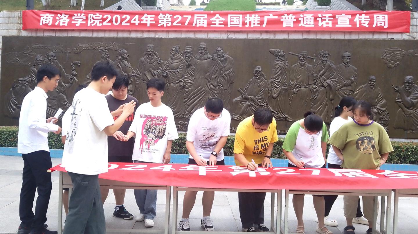 啟動(dòng)儀式結(jié)束后,現(xiàn)場(chǎng)師生在推廣橫幅上簽字表達(dá)學(xué)習(xí)國家通用語言文字的決心。