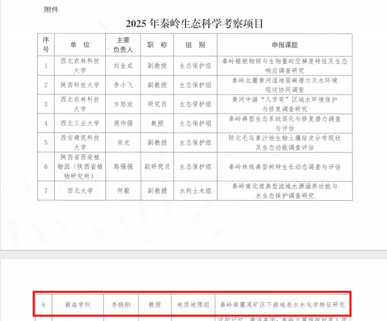 6月27日,由共青團陜西省委、省發(fā)展改革委、省林業(yè)局共同主辦的“美麗中國·青春行動”——2025年陜西共青團助力秦嶺生態(tài)環(huán)境保護青年志愿聯(lián)合行動主場活動在西安市鄠邑區(qū)秦嶺保護總站舉行,會上宣布了2025年秦嶺生態(tài)科學考察項目立項名單,我校建工學院、秦嶺南麓生態(tài)水文陜西省野外科學研究站李曉剛博士主持申報的《秦嶺南麓尾礦庫下游地表水水化學特征研究》獲批立項,李曉剛和我校青年志愿者代表現(xiàn)場接受了團省委秦嶺生態(tài)科學考察隊授旗。