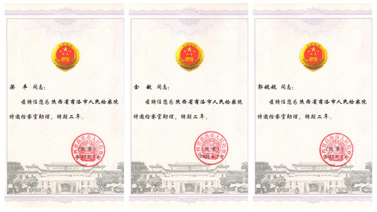 近日,商洛市人民檢察院公布了兼任檢察官助理聘任名單,我校教師梁豐、郭妮妮、金敏被聘為商洛市人民檢察院特邀檢察官助理,聘期2年。