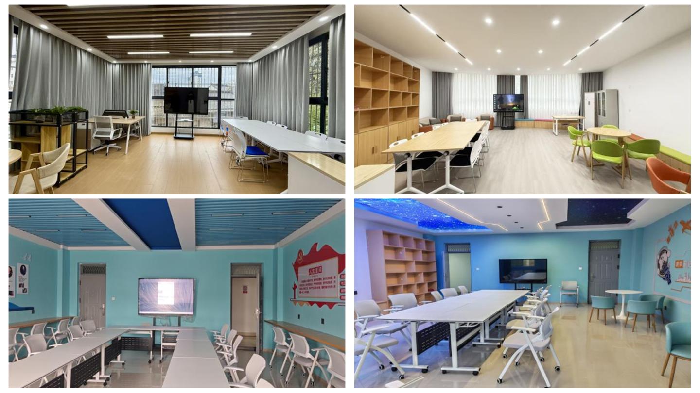 “寓”見系列服務(wù)空間按照“一室多能”的設(shè)計(jì)原則,打造了集黨團(tuán)活動(dòng)、談心談話、學(xué)業(yè)指導(dǎo)、就業(yè)服務(wù)、心理咨詢?yōu)橐惑w的復(fù)合型物理空間,為引導(dǎo)黨建力量、育人團(tuán)隊(duì)、文化活動(dòng)貼近學(xué)生開辟了新場(chǎng)域,打造了思政教育高地、師生交流陣地、文化交互基地、生活服務(wù)園地。