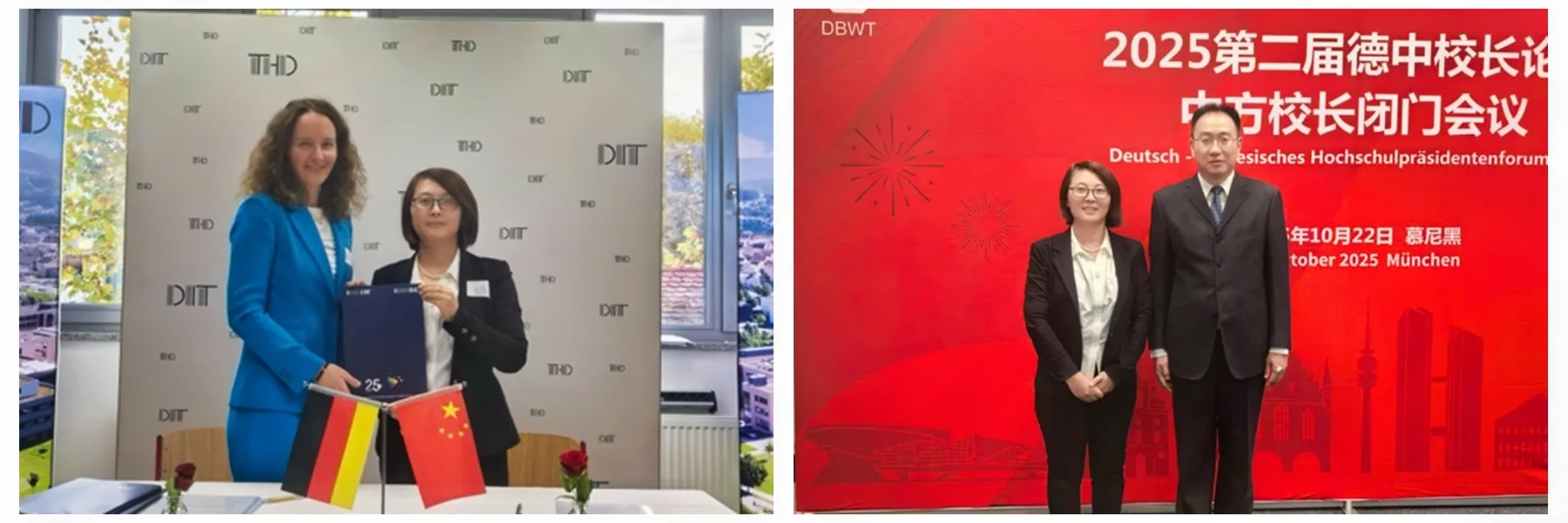 10月20日至23日,由教育部學(xué)校規(guī)劃建設(shè)發(fā)展中心組織,中德產(chǎn)學(xué)研用創(chuàng)新聯(lián)合體等單位共同主辦的“2025年中德校長論壇”在德國舉辦。中國教育部、德國巴伐利亞州科學(xué)藝術(shù)部和中德兩國10余所應(yīng)用型高校受邀參加此次論壇。受學(xué)校委派,我?;瘜W(xué)工程與現(xiàn)代材料學(xué)院黨委書記喬成芳、健康管理學(xué)院院長郭耀東參加論壇并開展相關(guān)活動。