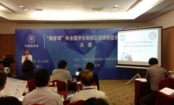 本次比賽由中國藥學(xué)會制藥工程專業(yè)委員會主辦、北京化工大學(xué)承辦,旨在從制藥工程領(lǐng)域的最新研究進(jìn)展、制藥工程本科人才的培養(yǎng)教育入手,為國內(nèi)外制藥工程領(lǐng)域企業(yè)界、科技教育界搭建研討平臺和溝通機(jī)會,促進(jìn)我國制藥工程的現(xiàn)代化和制藥工程領(lǐng)域科技和教育水平的提高。比賽分為初賽和決賽,經(jīng)過教育部專家初賽評選,我校學(xué)生張茹與北京化工大學(xué)、四川大學(xué)、武漢工程大學(xué)、上海工程技術(shù)大學(xué)、浙江工業(yè)大學(xué)等院校共6名選手進(jìn)入決賽,會上張茹用全英文進(jìn)行了論文答辯。