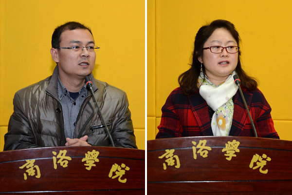 出國(guó)留學(xué)教師代表彭曉邦、任桂婷分別從國(guó)家公派留學(xué)項(xiàng)目相關(guān)事項(xiàng)、項(xiàng)目申報(bào)資格說明、基本申報(bào)材料說明和項(xiàng)目申報(bào)流程等方面分享了各自的留學(xué)經(jīng)驗(yàn)。