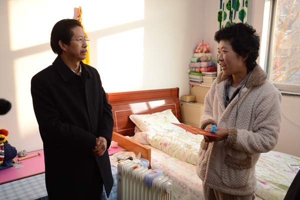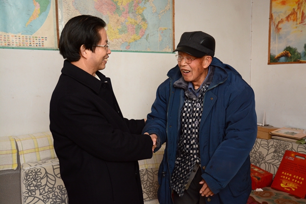 在孫玉峰老人家里,周樹紅詳細(xì)詢問老人的身體和家庭情況,以及生活上需要組織幫助解決的問題,對(duì)他為新中國(guó)教育事業(yè)做出的貢獻(xiàn)表示感謝,祝福他新年快樂、幸福安康,并叮囑他保重身體。