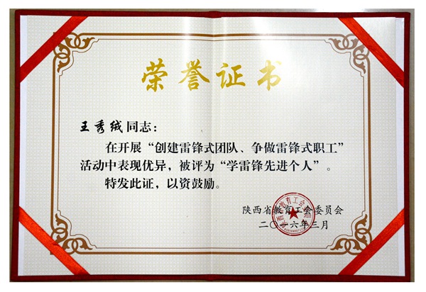 根據日前陜西省教育工會委員會下發(fā)的《關于“創(chuàng)建雷鋒式團隊、爭做雷鋒式職工”活動的表彰決定》,我校工會評選并推薦的人文社會科學學院心理服務志愿者團隊、人文社會科學學院歷史系主任王秀絨兩個學雷鋒先進典型,分別獲得陜西省高校“創(chuàng)建雷鋒式團隊、爭做雷鋒式職工”活動學雷鋒先進集體、先進個人榮譽稱號。
