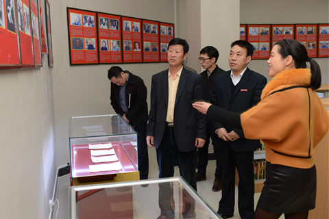 在黨委副書記彭虎軍的陪同下,督查組人員先后查看了我校黨員教育基地——紅色文化資料室和黨員活動室,仔細查閱了黨建工作資料。在聽取彭虎軍關(guān)于我校黨建工作的匯報后,胡仁強就本次黨建工作督查的目的、重點和要求進行了說明。結(jié)合學(xué)校黨建工作特點,他就進一步加強黨建工作規(guī)范化提出四點要求:一要制定落實機關(guān)黨建五條措施的實施細則,二要按照“六有”要求進一步加強陣地建設(shè),三要設(shè)立黨員責(zé)任區(qū)和黨員示范崗,四要進一步完善四個責(zé)任清單并上墻公示。