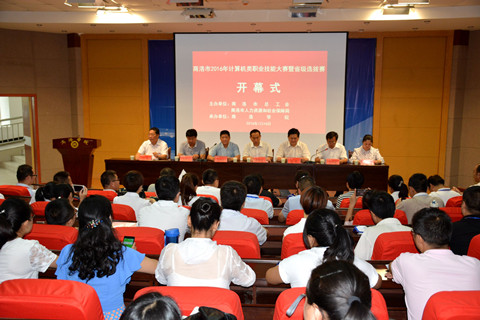 7月16日,由我校承辦的商洛市2016年計(jì)算機(jī)類職業(yè)技能大賽在我校舉行。商洛市人大常委會副主任、市總工會主席李選良宣布大賽正式開始。校黨委副書記、副校長范新會,商洛職業(yè)技術(shù)學(xué)院黨委書記、商洛市人力資源和社會保障局局長楊萌出席開幕式。我校教務(wù)處、繼續(xù)教育學(xué)院及商洛市總工會、商洛市人力資源和社會保障局等相關(guān)負(fù)責(zé)人參加開幕式。大賽開幕式由商洛市總工會常務(wù)副主席張新發(fā)主持。