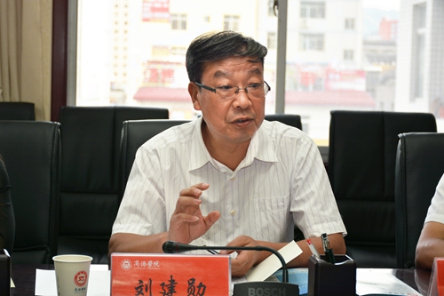 劉建林代表學(xué)校對劉建勛一行來??疾旖涣鞅硎練g迎,并向客人們介紹了我校的歷史沿革、辦學(xué)定位與辦學(xué)方向、辦學(xué)格局與學(xué)科專業(yè)、辦學(xué)特色與服務(wù)地方成就和師資隊(duì)伍建設(shè)情況。劉建林表示,我校四十年勵精圖治,升本十年風(fēng)雨兼程,近年來厚積薄發(fā),當(dāng)前,學(xué)校面臨著全面實(shí)施本科教育,構(gòu)建“穩(wěn)基提質(zhì)增速,創(chuàng)新驅(qū)動發(fā)展”新常態(tài),爭創(chuàng)一流應(yīng)用型本科院校三大任務(wù)。學(xué)校將大力實(shí)施“十大人才工程計(jì)劃”和“323211工程”,深化人事制度改革,營造“想干事、愿干事、能干事、干成事”的良好氛圍。