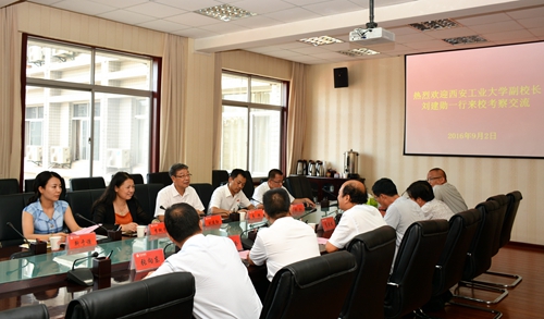 劉建勛代表西安工業(yè)大學(xué)對我校的熱情接待表示感謝,并向我校介紹了西安工業(yè)大學(xué)的校情校史、學(xué)科專業(yè)建設(shè)和人才隊(duì)伍建設(shè)情況,重點(diǎn)介紹了人才工作政策、激勵措施、聘任制度等方面的情況。