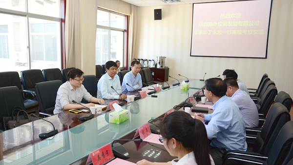 5月17日,陜西海外投資有限公司董事長丁永忠、副總經(jīng)理楊浩、外援部副部長郎海舟一行來到我校,看望慰問我校援非專家張軍的家屬,并送來對學(xué)校的表揚信。校長范新會接待了丁永忠一行,雙方就進(jìn)一步開展合作進(jìn)行了座談交流。