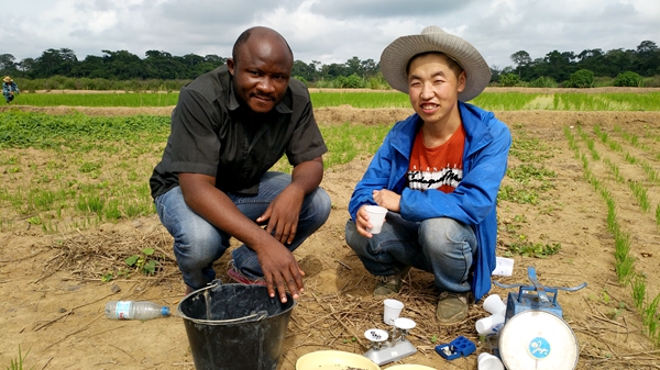 張軍(右)在喀麥隆開展工作