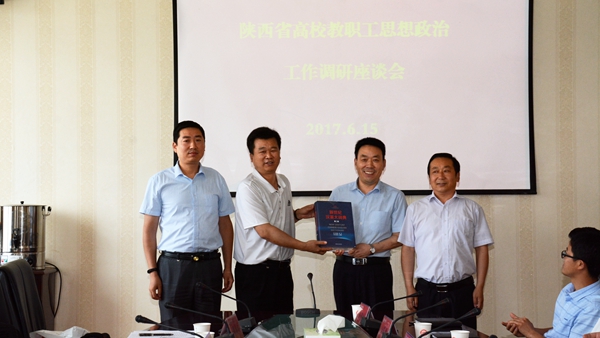 6月15日,由陜西省教育工會副主席陳鵬帶隊,由西安外國語大學(xué)工會主席趙沛、思政部副主任張親霞等一行7人組成的課題調(diào)研組來我校,對我校教職工思想政治工作開展調(diào)研。校黨委書記龍治剛會見了調(diào)研組成員。校黨委副書記、工會主席彭虎軍陪同會見,并與調(diào)研組進行座談。座談會由趙沛主持。