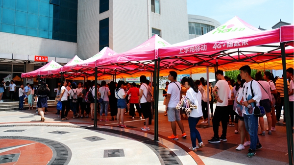 6月18日,是陜西省普通高校招生外語(yǔ)口語(yǔ)考試日。上午7:30開始,1541名考生陸續(xù)從商洛各地趕赴我校,在學(xué)生志愿者的引導(dǎo)下,有序排隊(duì)進(jìn)入考場(chǎng)參加考試,家長(zhǎng)則在指定區(qū)域休息等候。