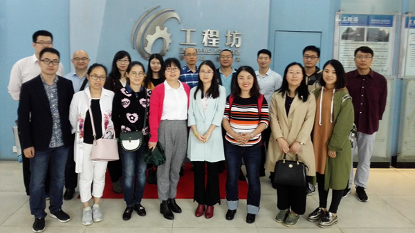 9月27日下午,參訓(xùn)教師集體到西安交通大學(xué)的實(shí)踐教學(xué)中心(工程坊)參觀學(xué)習(xí)。實(shí)踐教學(xué)中心(工程坊)主要負(fù)責(zé)統(tǒng)籌本科生實(shí)踐教學(xué)和大學(xué)生創(chuàng)新創(chuàng)業(yè)教育的資源整合、管理和組織實(shí)施,建設(shè)學(xué)科交叉綜合實(shí)踐創(chuàng)新訓(xùn)練平臺,培養(yǎng)學(xué)生綜合實(shí)踐能力和創(chuàng)新能力。參加培訓(xùn)的教師一行先后參觀了銑工、車工、鉗工、數(shù)控機(jī)床加工等機(jī)械工程實(shí)踐平臺,測控、電子工藝、3D打印室等電子電氣工程實(shí)踐平臺,以及陶藝室、影音創(chuàng)作室、印刷工藝室、刺繡坊等人文環(huán)境實(shí)踐平臺,并與賽車制作小組、攝影創(chuàng)作小組和3D模型制作小組的同學(xué)們進(jìn)行了交談。