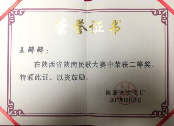 為傳承弘揚(yáng)陜西優(yōu)秀傳統(tǒng)文化,推出陜南民歌新人,今年5月,陜南民歌大賽啟動,面向全國開展,分別在漢中、安康、商洛三市設(shè)立分會場進(jìn)行海選,參賽選手不限年齡、職業(yè)、性別、唱法和演唱形式,采取現(xiàn)場演唱、評委打分評選出各市的“十大民歌手”。在陜南民歌大賽商洛賽區(qū)比賽中,王娜娜等10人獲得“商洛十大歌手”獎,并代表商洛市參加總決賽。
