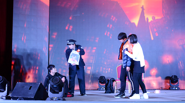 整場晚會形式多樣、豐富多彩,包括歌曲、舞蹈、相聲、啞劇、魔術(shù)、朗誦等18個節(jié)目。晚會在舞蹈《花開中國年》中拉開序幕。舞蹈《夢桃仙》將京劇元素融入排舞動作,歡快多姿、俏麗生動;相聲《我愛歌曲》語言風(fēng)趣幽默,帶動了全場氣氛;歌曲《光榮》謳歌了十九大描繪的偉大新時代,唱出了中國人自豪光榮的國家情懷;武術(shù)表演《秦武風(fēng)采》鏗鏘有力,一招一式中盡顯中華雄風(fēng);朗誦《永恒的情懷》感情真摯感人,感嘆青春芳華,表達(dá)了莘莘學(xué)子立志揮灑青春、奉獻(xiàn)祖國的豪情壯志;魔術(shù)《紅白幻象》千變?nèi)f化、精彩神奇,將觀眾帶入了奇幻的世界。