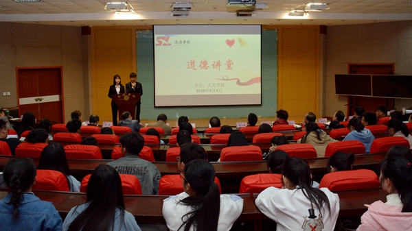 為進一步培育和踐行社會主義核心價值觀,大力宣傳學(xué)習(xí)道德模范和身邊好人的感人事跡,增強思想政治工作實效性,我校決定開辦“道德講堂”,每月一期,由各二級學(xué)院輪流負責(zé)舉辦。4月4日,由人文學(xué)院負責(zé),以“贈人玫瑰,手有余香”為主題的第一期“道德講堂”順利舉辦。紀委書記王思懷出席活動,宣傳部負責(zé)人及各二級學(xué)院黨總支書記參加活動。