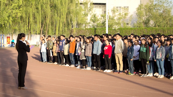 4月9日清晨7點(diǎn)10分,新一周緊張又忙碌的校園生活從數(shù)計(jì)學(xué)院“同抒愛國情,共筑中國夢”主題升旗儀式開始。伴隨著激昂的國歌,數(shù)計(jì)學(xué)院全體師生莊嚴(yán)而肅穆地注視著五星紅旗在體育場國旗臺冉冉升起。在體育場晨練、排練節(jié)目的師生及在周邊晨讀的同學(xué)聽到國歌響起,不約而同地原地肅立向國旗行注目禮,表達(dá)對國旗的敬意。