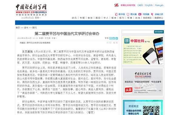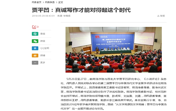 5月26日至27日,由我校與西北大學賈平凹研究中心、《小說評論》雜志社、丹鳳縣人民政府聯(lián)合舉辦的第二屆賈平凹與中國當代文學全國學術研討會在我校召開。來自全國22個?。ㄖ陛犑?、自治區(qū))的200余位專家學者齊聚我校,同時還吸引了全國媒體記者的目光。人民網、光明網、中國社會科學網、中國作家網、搜狐網、陜西日報、陜西省教育廳網站、陜西網、文化藝術報、三秦網、三秦都市報、華商網、西北信息報、商洛日報、商洛市人民政府、商洛廣播電視臺、商洛新聞網等中央、省、市媒體和參會代表所在單位進行了報道,一些微信、微博等自媒體也紛紛報道和轉發(fā)。通過報道,賈平凹的文學世界進一步為更多讀者所了解,賈平凹的文學藝術進一步在更廣闊的空間傳播,積極促進了商洛乃至陜西文學事業(yè)的繁榮發(fā)展,擴大了我校的知名度和影響力。