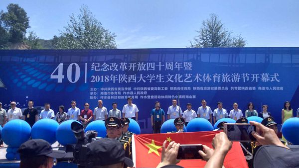 6月23日,為慶祝改革開放40周年,2018年陜西大學(xué)生文化藝術(shù)體育旅游節(jié)開幕式在柞水縣營盤鎮(zhèn)終南山寨舉行,中共陜西省委高教工委副書記李智軍、陜西省體育局副局長鄒軍、陜西省旅游發(fā)展委員會副主任陳夢榆、共青團陜西省委副書記魯鎮(zhèn)等省市領(lǐng)導(dǎo)出席開幕式。開幕式由商洛市委常委、副市長武文罡主持。副校長劉勇代表我校出席開幕式并上臺啟動本屆大學(xué)生文化藝術(shù)體育旅游節(jié),團委、教務(wù)處、體育教學(xué)研究部相關(guān)負責人參加。