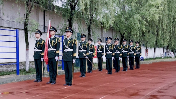 “升國旗,奏唱國歌,行注目禮!”隨著主持人的口令,雄壯的《義勇軍進行曲》奏響。旗手振臂一揮將國旗展向空中,鮮艷的五星紅旗在國旗護衛(wèi)隊員莊嚴軍禮的映襯下,迎著徐徐的微風冉冉升起,飄揚在校園上空,為雨后的校園增添了一抹莊嚴的色彩。
