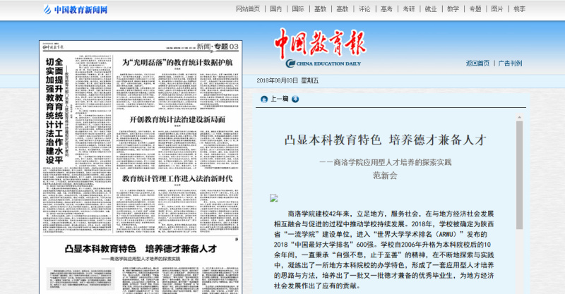 校長范新會在《中國教育報》2018年8月3日第3版發(fā)表署名文章《凸顯本科教育特色 培養(yǎng)德才兼?zhèn)淙瞬拧搪鍖W院應用型人才培養(yǎng)的探索實踐》,全文如下: