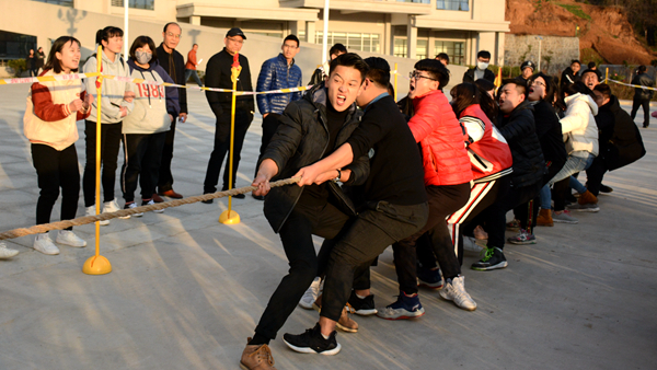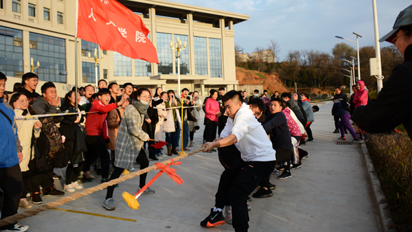 為了扎實(shí)推進(jìn)“陽(yáng)光體育運(yùn)動(dòng)”,增強(qiáng)集體凝聚力,根據(jù)《商洛學(xué)院2018年冬季健身活動(dòng)方案》安排,11月19日至20日,我校在教學(xué)綜合樓前舉行了一場(chǎng)激烈的冬季拔河比賽。校黨委委員、教務(wù)處處長(zhǎng)李超,團(tuán)委、體育教學(xué)研究部等相關(guān)部門負(fù)責(zé)人參加了活動(dòng)。