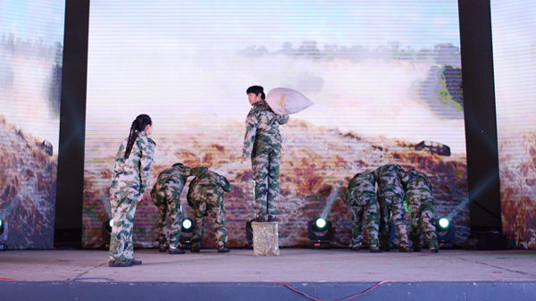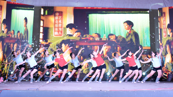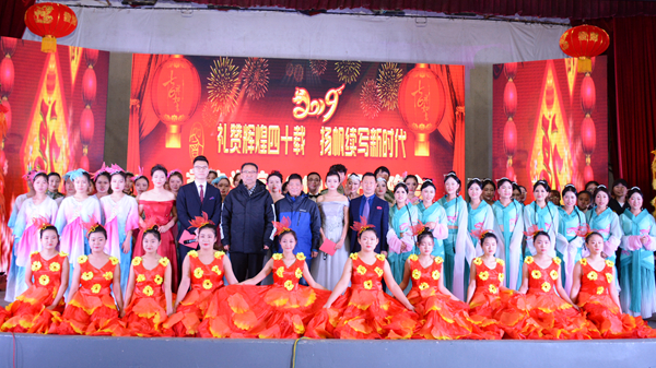 晚會(huì)結(jié)束后,校領(lǐng)導(dǎo)與全體演職人員合影留念。