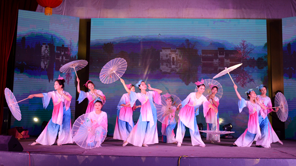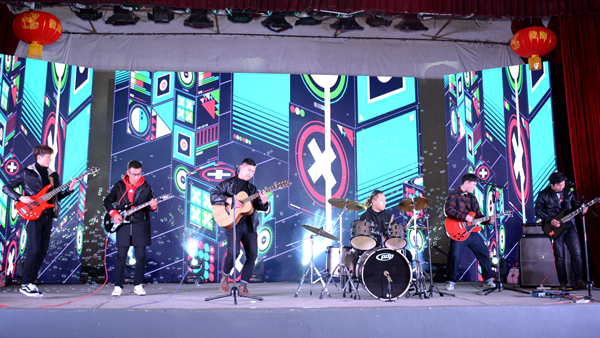 當(dāng)晚的大學(xué)生活動(dòng)中心張燈結(jié)彩,喜氣洋洋,洋溢著歡快的節(jié)日氣氛。晚會(huì)在《春節(jié)序曲》《花好月圓》器樂(lè)合奏的精彩表演中拉開(kāi)序幕,歌舞、相聲、小品、武術(shù)、戲曲等17個(gè)形式多樣、精彩紛呈的節(jié)目贏得了臺(tái)下觀眾們的陣陣喝彩。其中,《China beat》用街舞與中國(guó)元素相結(jié)合,動(dòng)感的舞步展示了商院學(xué)子活潑團(tuán)結(jié)、朝氣蓬勃、健康向上的精神風(fēng)貌;教職工們身著漢服邁著輕快靈動(dòng)、曼妙翩躚舞步,用一支古典舞《采薇》展示了中華文化的博大精深;電音歌曲《彩虹》以激昂高亢的節(jié)奏燃爆全場(chǎng);相聲《西游說(shuō)》致敬經(jīng)典,語(yǔ)言詼諧幽默,贏得了全場(chǎng)熱烈的掌聲;蒙蒙煙雨,幽幽古巷,裊裊佳人,在無(wú)數(shù)小橋流水的襯托下,一曲《小城雨巷》更顯江南的柔媚;《武動(dòng)青春》集百家之長(zhǎng),將雙截棍、太極、跆拳道、散打融為一體,高亢的鑼鼓伴隨著舞獅將現(xiàn)場(chǎng)的氣氛推向了高潮。