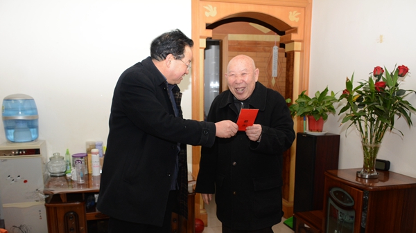 1月26日,副校長魏書堂在院長辦公室、離退休工作處負(fù)責(zé)人的陪同下,登門看望了退休校領(lǐng)導(dǎo)劉文斌,介紹了學(xué)校一年來的發(fā)展變化,代表學(xué)校感謝老領(lǐng)導(dǎo)長期以來對學(xué)校工作的關(guān)心和支持,詳細(xì)詢問了他的生活以及身體健康情況,并祝愿老領(lǐng)導(dǎo)新年快樂,闔家幸福,希望他保重身體,安享幸福生活。之后,魏書堂一行走訪慰問了牛樹林、郭貞賢、田希民、李英杰等10位離退休老同志。每到一戶,魏書堂都詳細(xì)詢問老同志的身體狀況和生活情況,囑咐他們保重身體,衷心感謝老同志們?yōu)閷W(xué)校改革與發(fā)展所作的無私奉獻(xiàn),同時祝愿大家身體健康、家庭幸福,希望老同志們繼續(xù)關(guān)心學(xué)校的發(fā)展建設(shè),多提寶貴意見。老同志們對學(xué)校給予他們的關(guān)心和問候表示感謝,他們紛紛表示,將不負(fù)學(xué)校的囑托,一如既往地關(guān)注和支持學(xué)校發(fā)展。