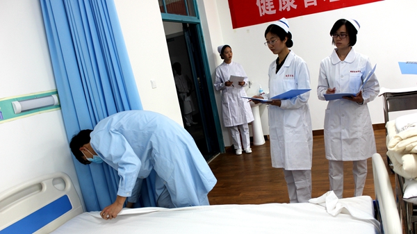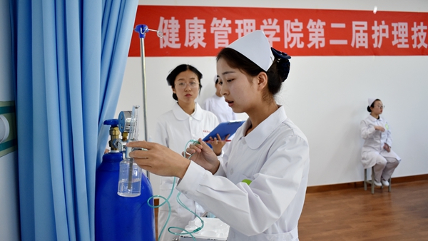近日,我校舉辦第二屆護理技能操作大賽,大賽特邀商洛市中心醫(yī)院專業(yè)醫(yī)師和護士長擔(dān)任評委。教務(wù)處負責(zé)人及健康管理學(xué)院相關(guān)教師觀摩了比賽。