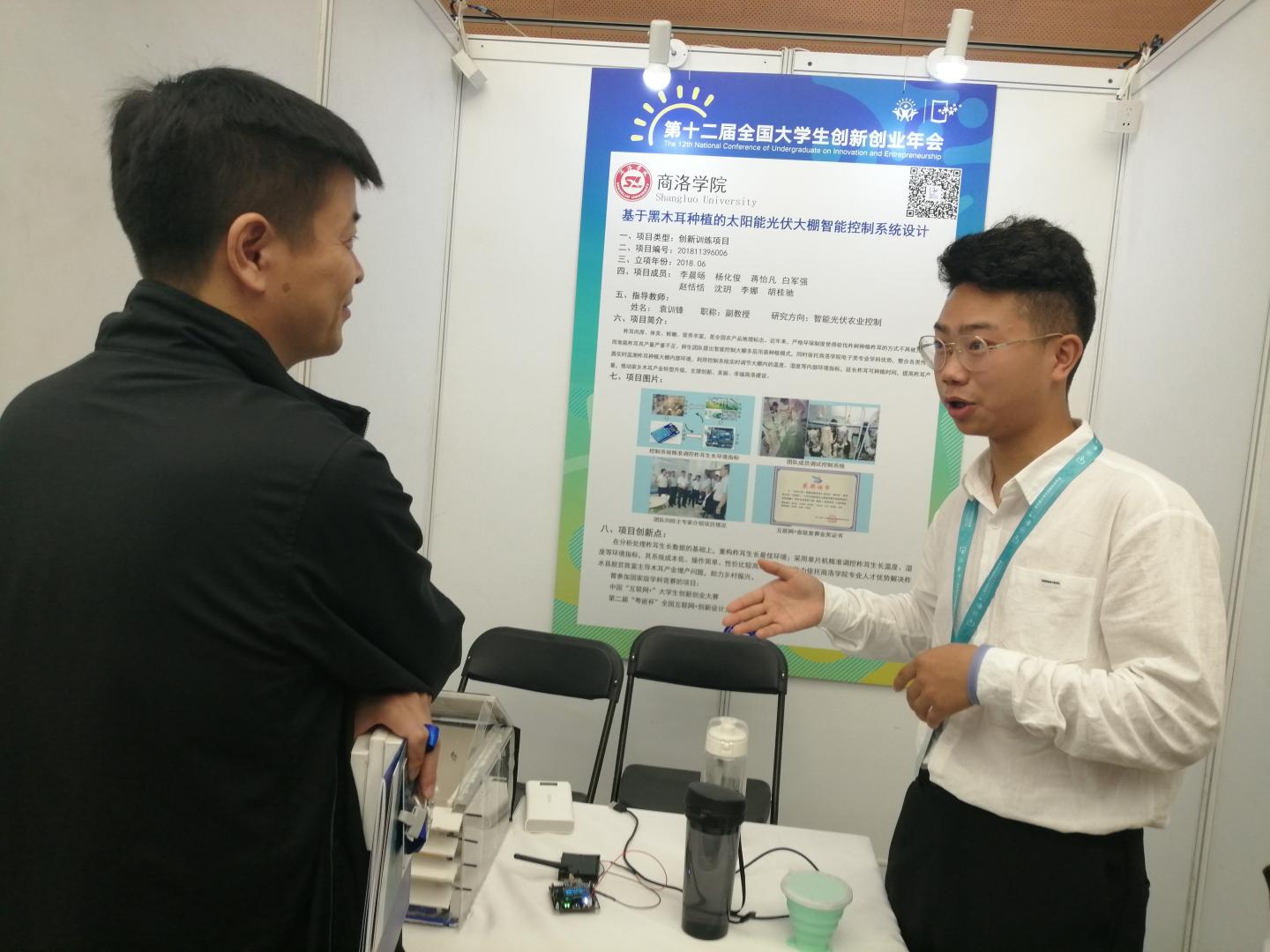 按照教育部、省教育廳有關(guān)要求,學(xué)校從6月開始籌備參賽事宜,經(jīng)過校內(nèi)遴選、指導(dǎo)打磨,教育廳層層選拔、教育部終審評定,由我校電子信息與電氣工程學(xué)院教師袁訓(xùn)鋒、楊燕指導(dǎo),學(xué)生楊化俊、李娜、胡桂馳等完成的創(chuàng)新創(chuàng)業(yè)項(xiàng)目作品“基于黑木耳種植的太陽能光伏大棚智能控制系統(tǒng)設(shè)計”,最終成功入圍年會展示交流項(xiàng)目,并在現(xiàn)場展示中獲得與會專家和師生的廣泛好評。