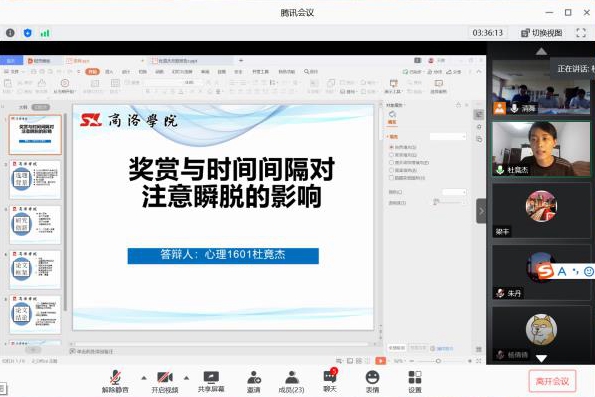 ——線上答辯、井然有序。各學院根據(jù)實際情況采取線下線上相結合的方式組織論文答辯。近2000名學生使用騰訊會議、騰訊課堂、釘釘?shù)确€(wěn)定、流暢的網(wǎng)絡平臺,通過在線直播互動或視頻會議方式進行論文答辯。各學院根據(jù)本院師生的論文寫作與指導進展情況,認真組織籌劃,嚴守時間節(jié)點,科學制定本學院畢業(yè)論文(設計)答辯方案及成績評定規(guī)范,提前做好在線答辯細節(jié)演練,分配好答辯小組,嚴密答辯流程,確保了答辯工作與往年現(xiàn)場答辯相比等質(zhì)同效、水準不降。在線上答辯中,合理分配任務,做好排序通知,保持答辯順暢進行。在線下現(xiàn)場答辯中,做好室內(nèi)消殺、開窗通風,避免人員聚集,嚴格落實各項防控措施。