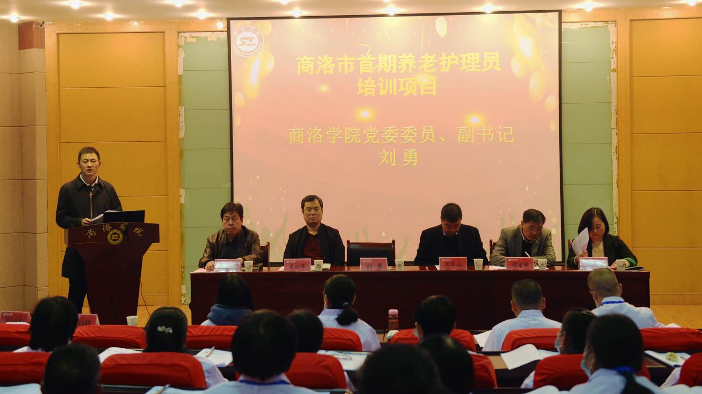 10月17日上午,商洛市首期養(yǎng)老護(hù)理員培訓(xùn)在我校開(kāi)班授課。校黨委副書(shū)記劉勇、商洛市人力資源和社會(huì)保障局副局長(zhǎng)衛(wèi)華山、商洛市民政局副局長(zhǎng)王小軍出席開(kāi)班典禮。商洛高新區(qū)黨群部副部長(zhǎng)程書(shū)軍,我校繼續(xù)教育學(xué)院院長(zhǎng)樊景博,健康管理學(xué)院副院長(zhǎng)、項(xiàng)目首席專(zhuān)家張曉文參加開(kāi)班典禮。典禮由樊景博主持。